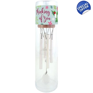 Our giftable mini chimes are made of wood, aluminum, and high quality glass crystals. Each chime comes in a clear acetate cylinder with a printed phrase....